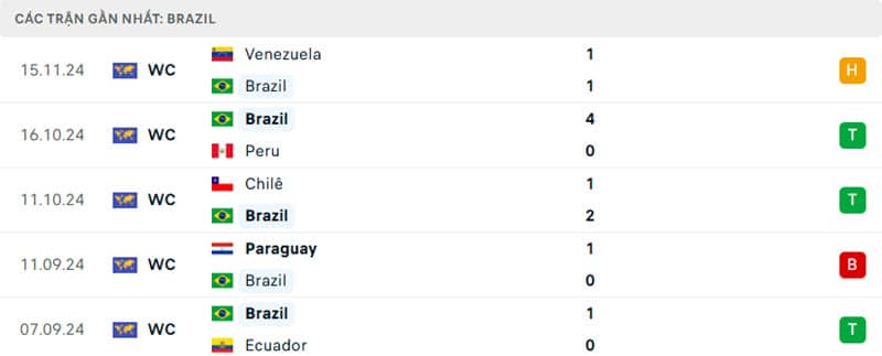 Brazil, dưới sự dẫn dắt của HLV Dorival Junior, hiện đang đứng ở vị trí thứ tư trên bảng xếp hạng với 17 điểm, chỉ hơn vị trí thứ năm một điểm. Sau 11 trận đấu, Selecao có được 5 chiến thắng, 2 trận hòa và 4 thất bại, một thành tích không như mong đợi cho một đội bóng từng năm lần giành chức vô địch World Cup. Trong trận đấu gần nhất, Brazil chỉ có được trận hòa 1-1 trước Venezuela. Raphinha đã mở tỷ số cho Brazil, nhưng đội chủ nhà đã gỡ hòa ngay sau đó, khiến Brazil không thể có được 3 điểm.