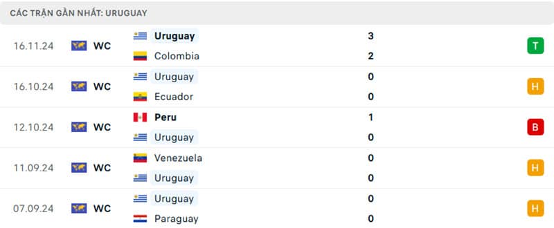 Ngược lại, Uruguay, dưới sự chỉ đạo của HLV Marcelo Bielsa, đang có phong độ tốt hơn. Đội bóng này vừa có chiến thắng quan trọng 3-2 trước Colombia, trong đó bàn thắng quyết định được ghi ở phút 11 của thời gian bù giờ. Với 5 chiến thắng, 4 trận hòa và 2 thất bại, Uruguay hiện đứng thứ hai với 20 điểm, chỉ kém Argentina 3 điểm. Chiến thắng trước Colombia giúp họ tự tin bước vào trận đấu với Brazil, nơi mà họ đã thắng trong cả hai lần gặp gỡ gần nhất.