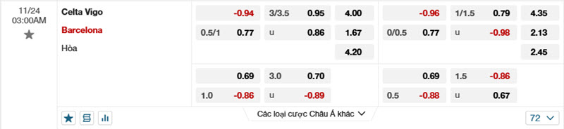 Tỷ lệ kèo Celta Vigo vs Barcelona