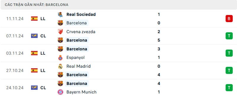 Ngược lại, Barcelona đang có phong độ thăng hoa dưới sự dẫn dắt của Hansi Flick. Tuy nhiên, họ vừa trải qua một cú sốc khi để thua Real Sociedad 0-1 trước đợt nghỉ quốc tế. Đây là kết quả không mong đợi, nhưng có thể xem là một sự nhắc nhở cần thiết cho các cầu thủ về tầm quan trọng của việc duy trì sự tập trung và quyết tâm.