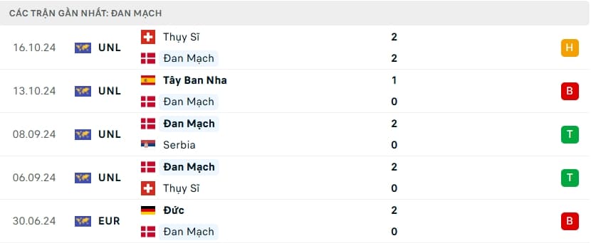 Phong độ gần đây Đan Mạch vs Tây Ban Nha