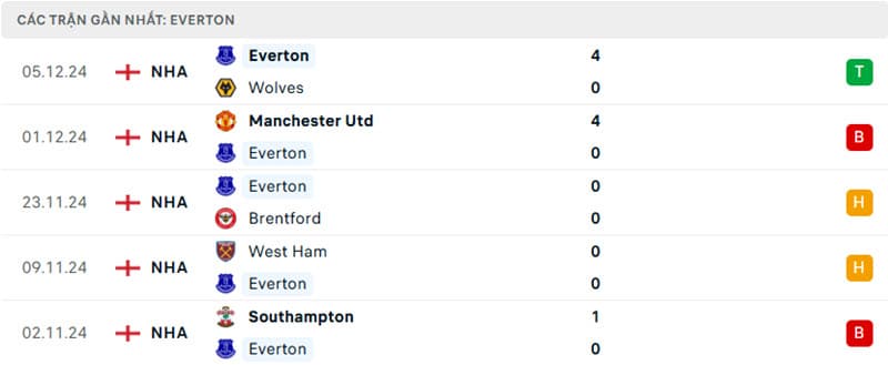 Everton vừa có một chiến thắng ấn tượng 4-0 trước Wolves, giúp họ chấm dứt chuỗi 5 trận không thắng (3 hòa, 2 thua). Dưới sự dẫn dắt của huấn luyện viên Sean Dyche, The Toffees từng có chiến thắng 2-0 trước Liverpool ngay tại Goodison Park. Điều này sẽ là động lực lớn cho các cầu thủ nửa xanh thành Merseyside, khi họ muốn tái lập thành tích này trước đối thủ truyền kiếp.