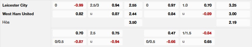 Trong khi đó, West Ham cũng đang tìm kiếm sự phục hồi sau những thất bại gần đây. Mặc dù họ có thành tích không tốt khi đối đầu với Leicester, nhưng đội bóng này vẫn có những cầu thủ chất lượng có thể tạo ra sự khác biệt. Cả hai đội đều cần ghi bàn, và trận đấu này có thể có nhiều bàn thắng. BongDaLu gợi ý bạn nên nằm kèo tài.