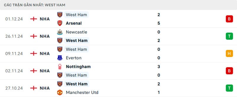 Ở phía bên kia, West Ham cũng đang trải qua một giai đoạn khó khăn. Dù có chiến thắng 2-0 ấn tượng trước Newcastle sau kỳ nghỉ quốc tế, nhưng trận thua 5-2 trước Arsenal vào cuối tuần đã cho thấy những vấn đề trong lối chơi của họ. Dưới sự dẫn dắt của HLV Julen Lopetegui, West Ham vẫn đang vật lộn để tìm kiếm sự ổn định, khi chỉ giành được 4 chiến thắng trong 13 trận đầu tiên tại Premier League mùa này.