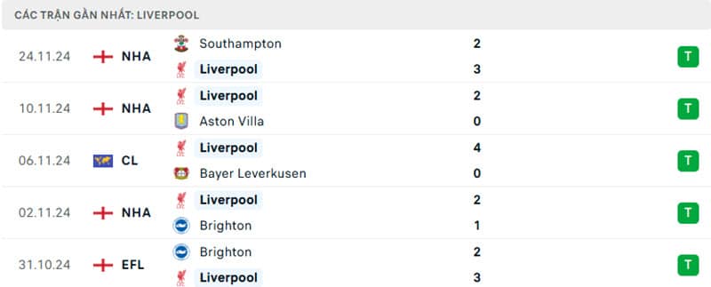 Liverpool hiện đang dẫn đầu bảng xếp hạng Premier League, một thành tích đáng khen ngợi trong bối cảnh các đối thủ như Manchester City và Arsenal gặp khó khăn. Dưới sự dẫn dắt của HLV Arne Slot, Liverpool đã có sự trở lại mạnh mẽ, với chuỗi năm trận thắng liên tiếp trên mọi đấu trường. Mới đây, họ đã có chiến thắng 3-2 trước Southampton, mặc dù gặp khó khăn trong hiệp hai. Trận đấu này cho thấy khả năng chiến đấu của Liverpool, khi họ có thể lật ngược tình thế và giành chiến thắng dù không thi đấu ở phong độ cao nhất.