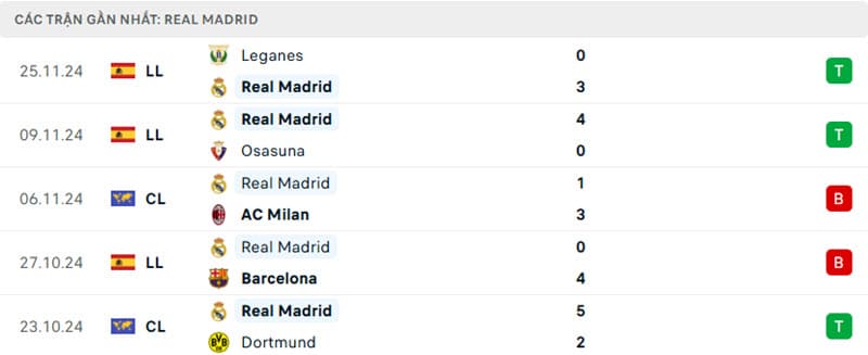 Tuy nhiên, Madrid đã có dấu hiệu hồi phục với hai chiến thắng gần đây trước Osasuna và Leganes, sau khi gặp phải thất bại trước Barcelona và AC Milan. Họ cũng đã bị Lille đánh bại 1-0 trong một trận đấu Champions League, cho thấy những vấn đề trong việc kết nối đội hình và phát huy sức mạnh tấn công.