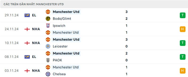 Manchester United vừa có một chiến thắng quan trọng 3-2 trước Bodo/Glimt tại Europa League, điều này giúp họ kéo dài chuỗi bất bại lên 6 trận trên mọi đấu trường. Tuy nhiên, đội bóng này vừa trải qua một kết quả thất vọng khi chỉ có được trận hòa 1-1 trước Ipswich Town, khiến họ rơi xuống vị trí 12 trên bảng xếp hạng Premier League. Với thành tích 3 thắng, 1 hòa và 2 thua tại Old Trafford, Manchester United cần cải thiện phong độ để trở lại cuộc đua top đầu.