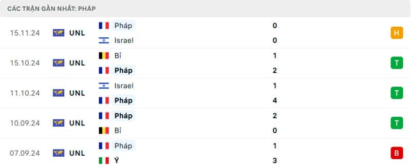 Phong độ gần đây Ý vs Pháp